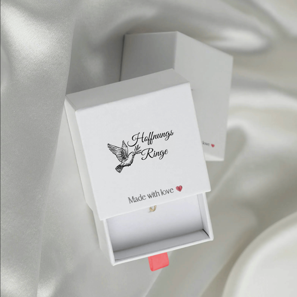 Änderungen oder Stornierungen sind innerhalb von 24 Stunden nach Bestelleingang möglich. Schreiben Sie uns bitte umgehend an support@hoffnungsringe.com.
